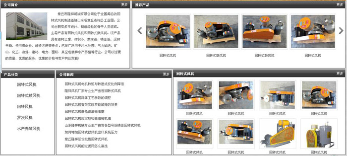 名称: 章丘市隆祥机械有限公司 分类:企业官网 TAG: VISIT SITE 访问该网站 章丘市隆祥机械有限公司位于全国闻名的回转式风机制造基地山东省章丘市相公工业园。公司由拥有多年设计、制造经验的骨干人员组成。主导产品有回转式风机和罗茨鼓风机。